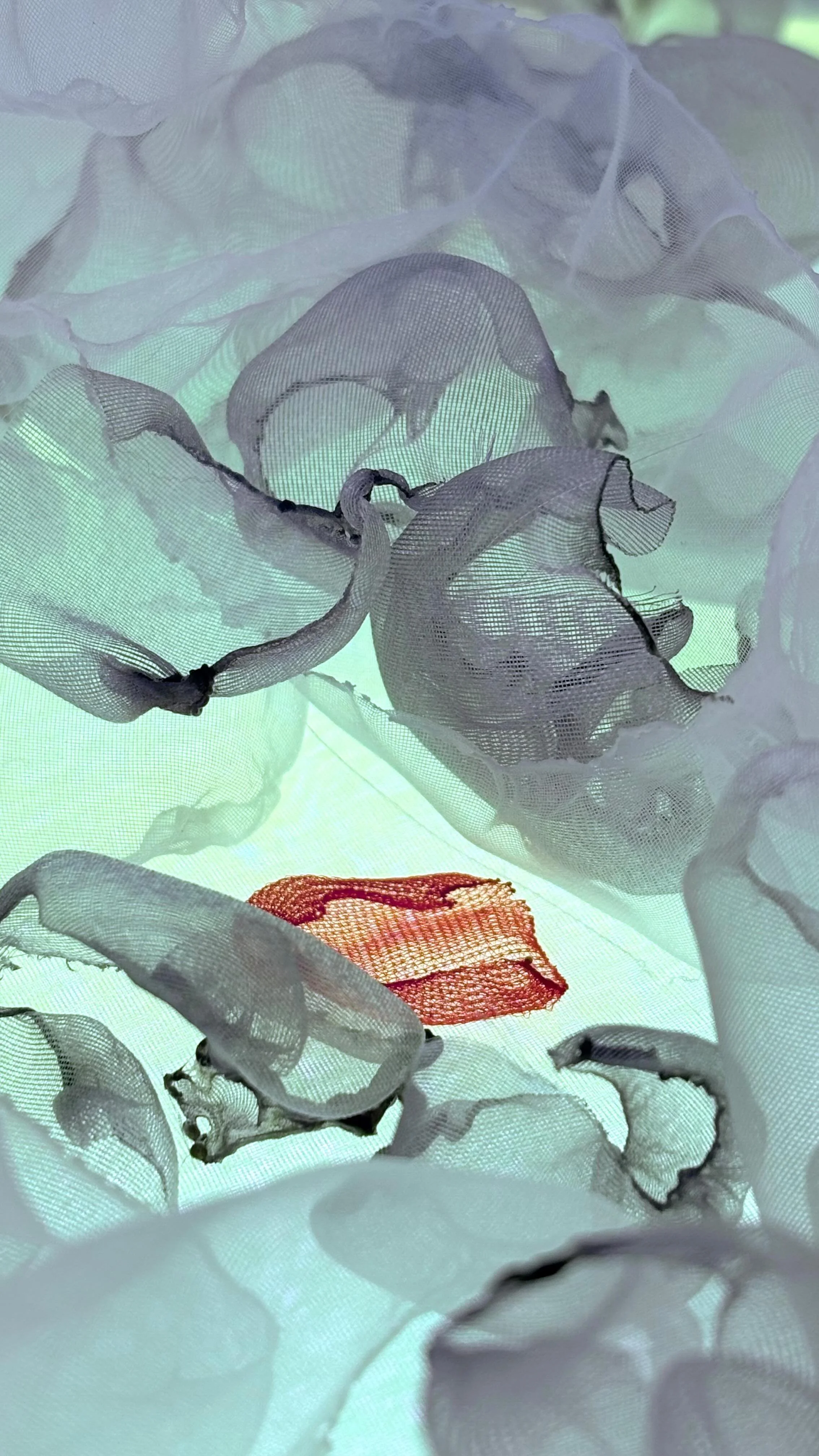I grew up immersed in fabric. My mother sewed and wove. The world of threads, textures, and patterns became my childhood artistic language. This early exposure guided my path: I pursued a bachelor’s degree in Textile Arts, where I explored weaving, batik, and other traditional textile practices. Over time, during my master’s program, my work evolved toward experimentation, seeking new ways to push the boundaries of the textile material and its meaning.